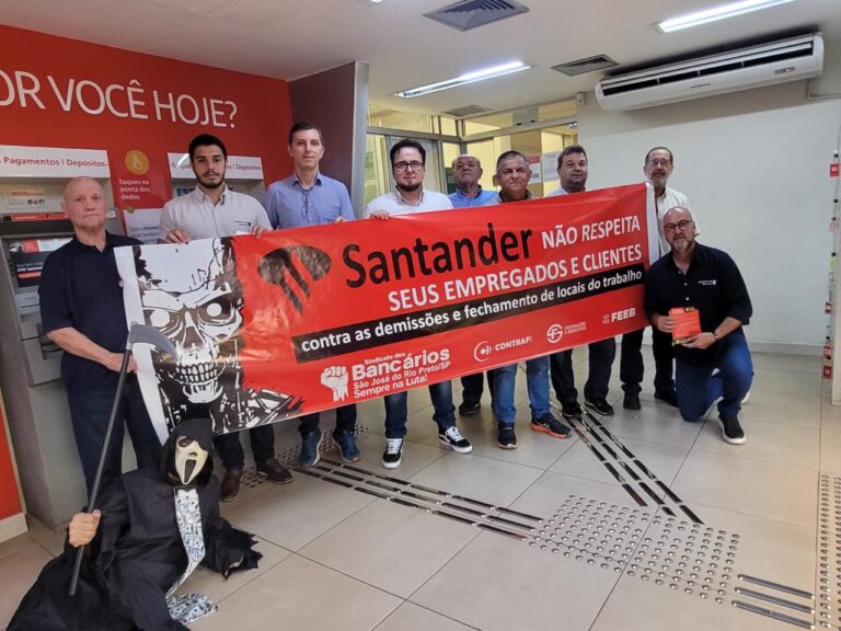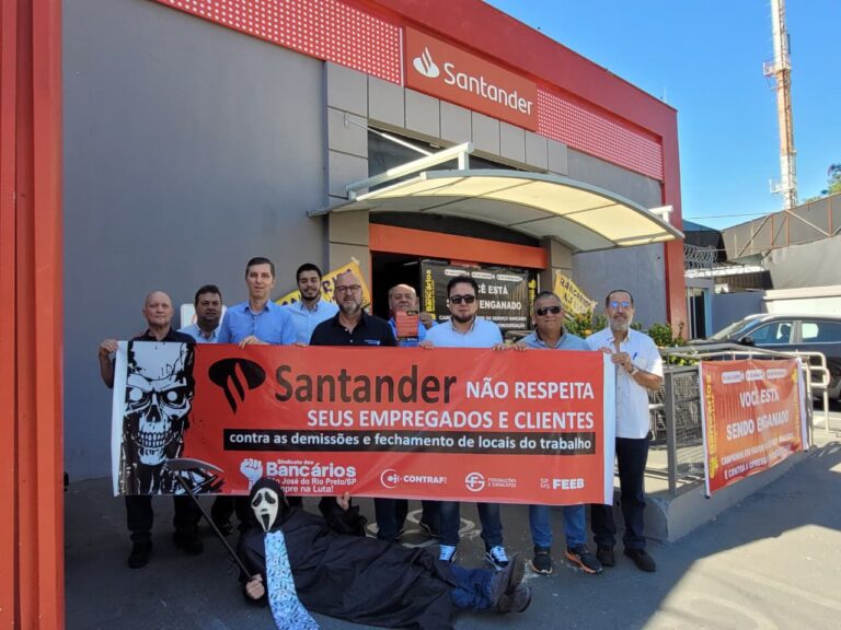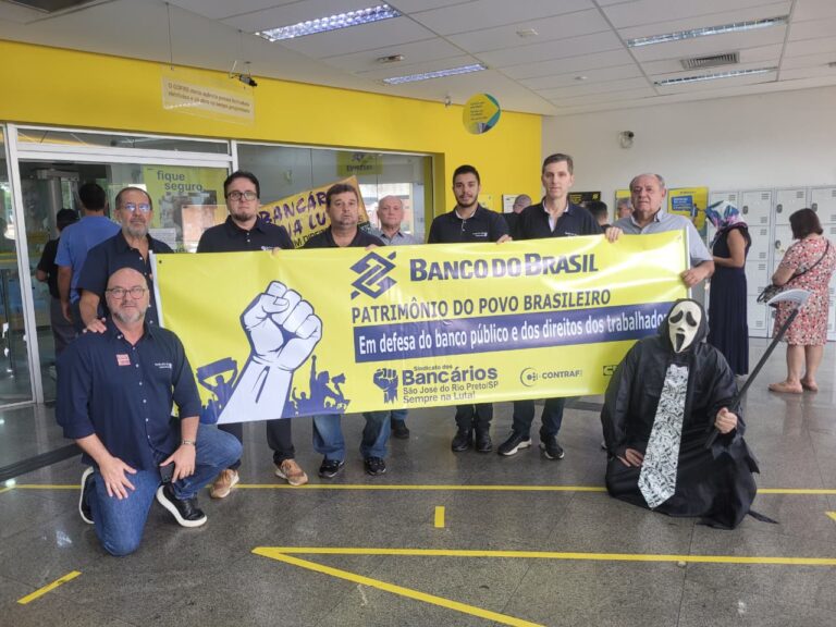 Nesta quarta-feira (05), a diretoria do Sindicato dos Bancários de Rio Preto e região, realizou uma mobilização pacífica na agência