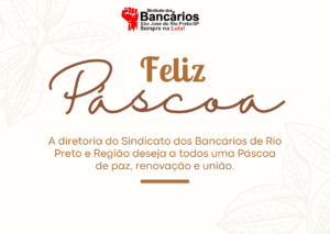 A diretoria do Sindicato dos Bancários de Rio Preto e Região deseja a todos os bancários e suas famílias uma Páscoa repleta de paz, renovação
