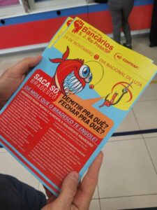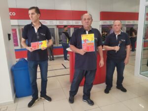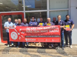 Na manhã desta quarta-feira (19), o Sindicato realizou uma manifestação pacífica na agência 0023-0, localizada na Rua Bernardino de Campos. O ato denunciou o fechamento de agências físicas, a demissão de funcionários e a precarização do atendimento à população. A mobilização faz parte do Dia Nacional de Luta no Bradesco, que cobra melhores condições de trabalho, manutenção dos empregos e um atendimento digno para clientes e funcionários.