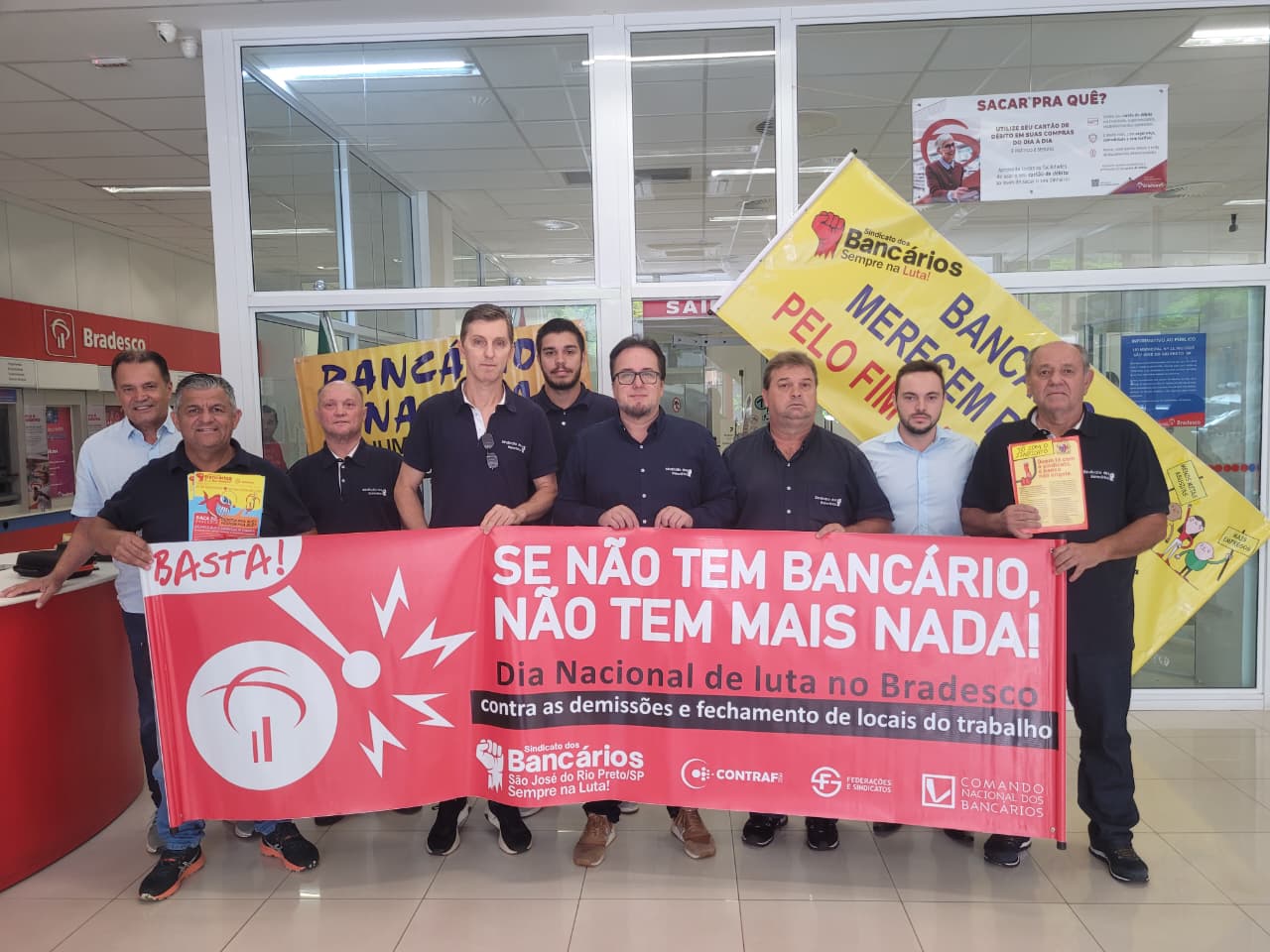 O presidente do Sindicato dos Bancários de Rio Preto e região, Júlio César Grochovski, destacou a participação de Rio Preto no Dia Nacional de Luta no Bradesco “Estamos aqui hoje para denunciar o fechamento contínuo de agências e a redução dos postos de trabalho. Essas ações enfraquecem o atendimento à população e mostram que o banco não está cumprindo seu papel social. Respeito aos bancários e aos clientes: é o mínimo que esperamos!”, disse.