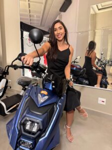 Karen Rozeno (Banco Santander), vencedora da moto azul, celebrou: “Estou muito feliz, não estou nem acreditando. A festa surpreendeu em todos os aspectos. Muito feliz em fazer parte. Gratidão, diretoria!”