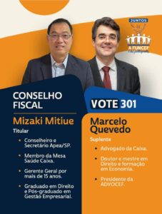 “Reforçamos nosso apoio ao colega Mizaki e ao seu suplente Marcelo. Vote 301 para o Conselho Fiscal. A sua participação faz a diferença!”, destacou o presidente Júlio César Grochovski.