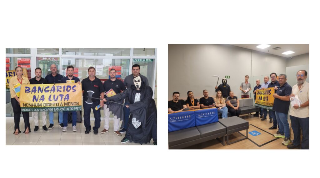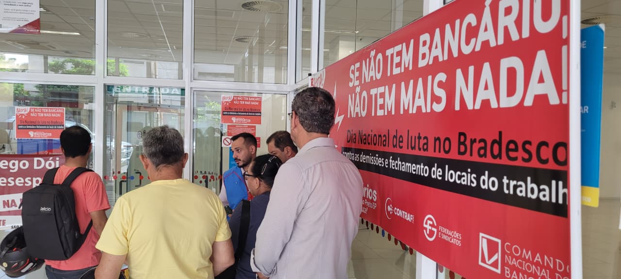 Em São José do Rio Preto, a paralisação na Agência 023 Central Bradesco, das 11h às 12h, chamou a atenção da sociedade para o cenário de desligamentos, apesar dos altos lucros apresentados pelo banco. A manifestação reforçou a importância da preservação de postos de trabalho, da valorização dos bancários e da manutenção de um atendimento de qualidade à população.