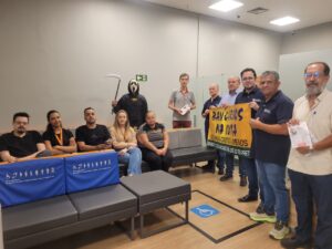 Simultaneamente, em Monte Aprazível, a diretoria do Sindicato realizou ato de protesto contra o fechamento de agências do Itaú, como a Agência 0583, prevista para encerrar atividades no dia 26 de março. O ato serviu também para dialogar com clientes e trabalhadores, conscientizando sobre os impactos dessas decisões na comunidade local.