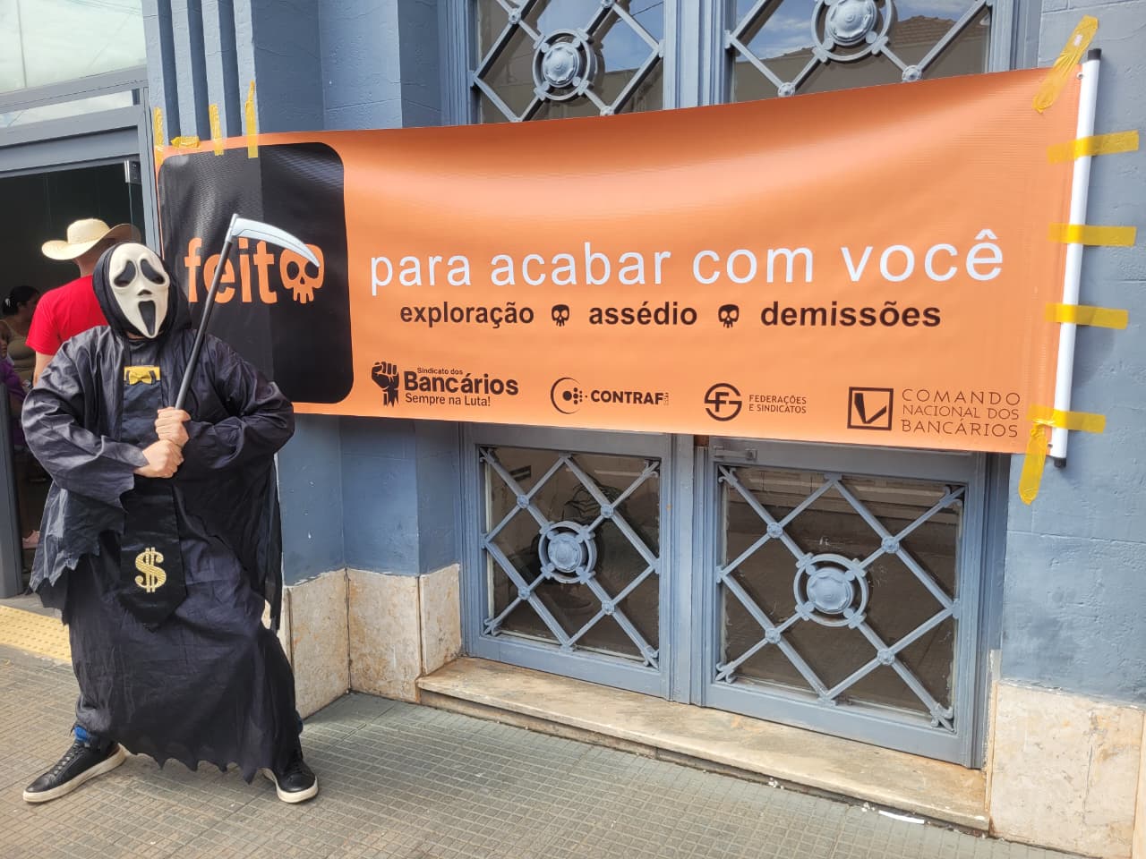 O Bradesco, mesmo com lucro bilionário de quase R$ 25 bilhões em 2025, demitiu 2.092 bancários no período. “É inadmissível que essa realidade continue”, criticou Hilário Ruiz, durante a ação em São José do Rio Preto.