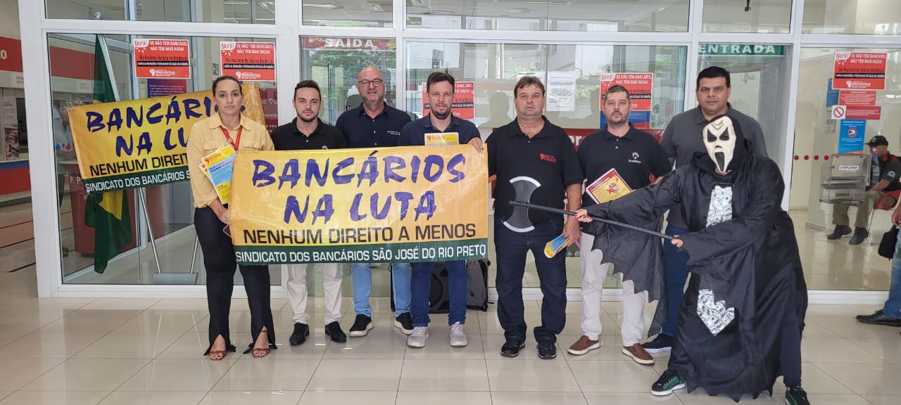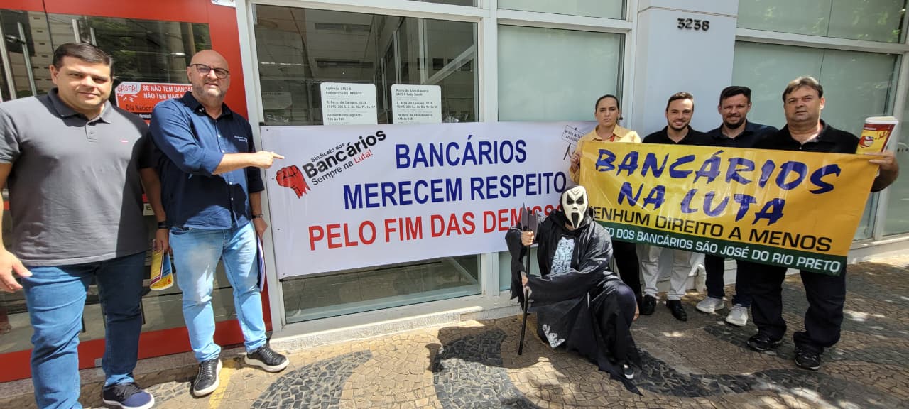 Sindicato dos Bancários de Rio Preto e Região realiza manifestações contra demissões e fechamento de agências em Dia Nacional de Luta